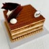 A sophisticated medley of bold flavors and refined textures, Harmony Layers is a modern interpretation of the classic Opera Gâteau. Delicate vanilla sponge layers are soaked in aromatic coffee-infused sugar syrup, creating the perfect foundation for a rich composition. Each tier is luxuriously filled with silky coffee-flavoured custard cream and decadent dark chocolate ganache, blending smoothness and intensity in perfect balance. The top is adorned with a refined edible mesh, a stunning calligraphy of the word “Opera” elegantly crafted into the decoration, and finished with artisanal chocolate ornaments. A true expression of balance, indulgence, and artistry.