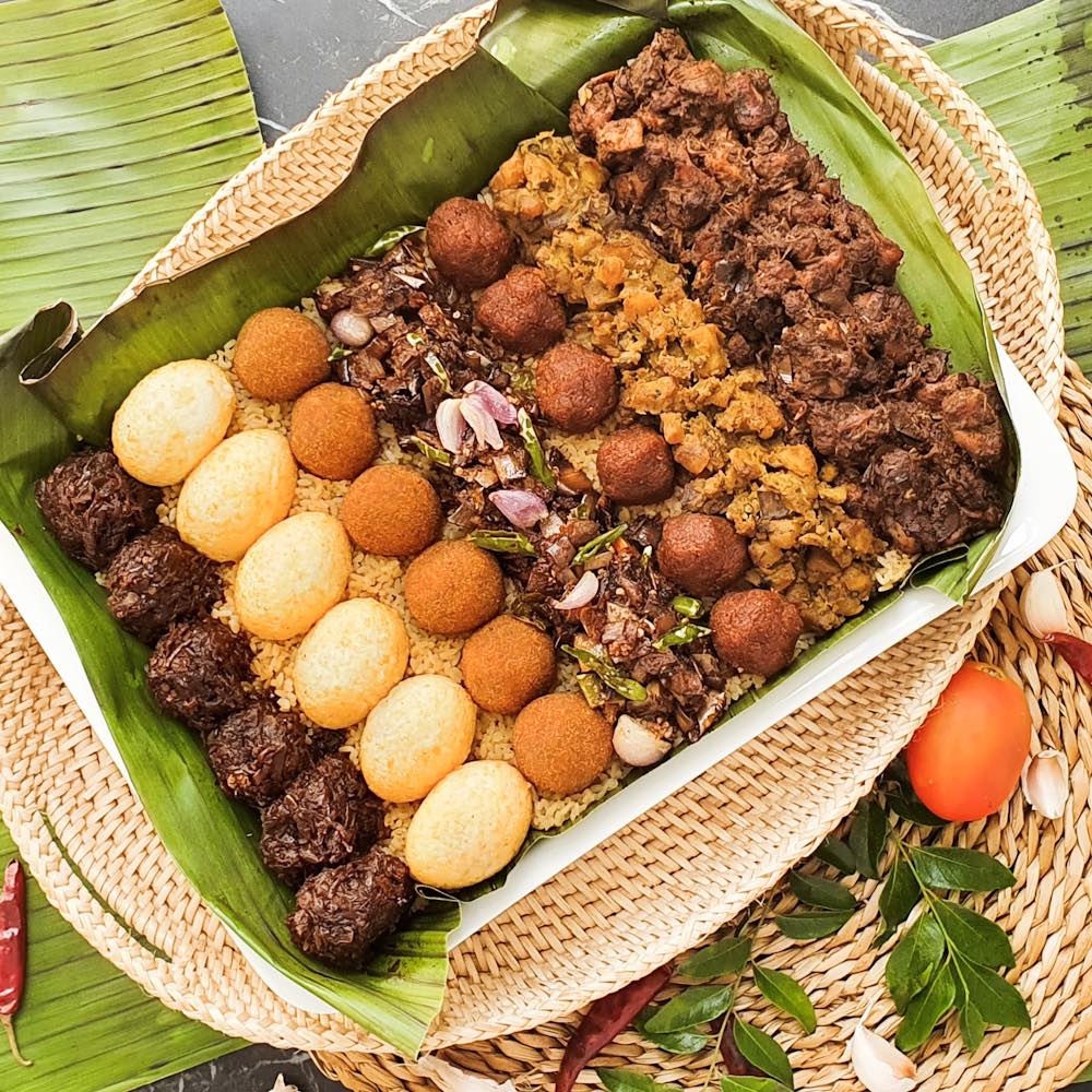 Your favourite Lamprais is made of rice cooked in ghee and stock served with a cubed chicken curry, boiled and fried egg, ash plantain, brinjal moju, frikkadel and prawn blachan. Now available in a pack so that you can share with your family and friends.