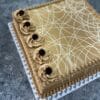 A soft chocolate and coffee cake sandwiched with coffee butter icing and covered in coffee fudge.