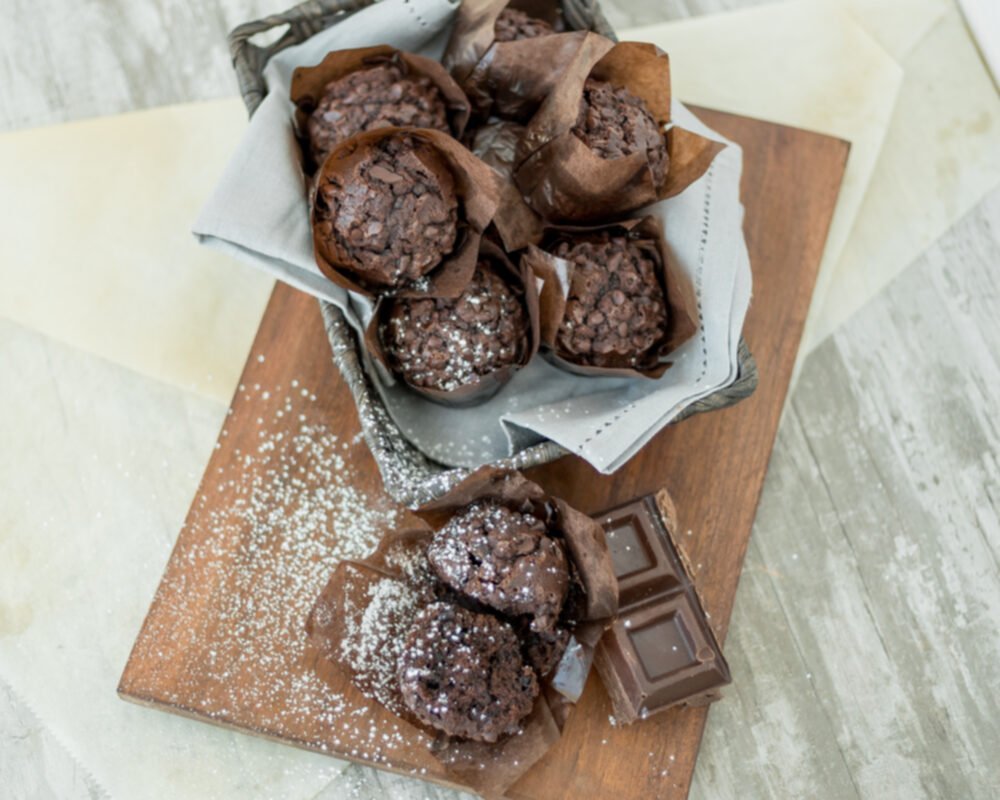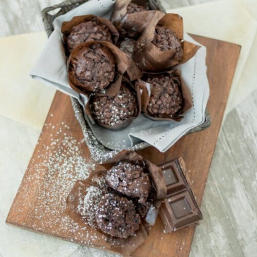 Rich chocolate chip muffin with double the chocolate dose