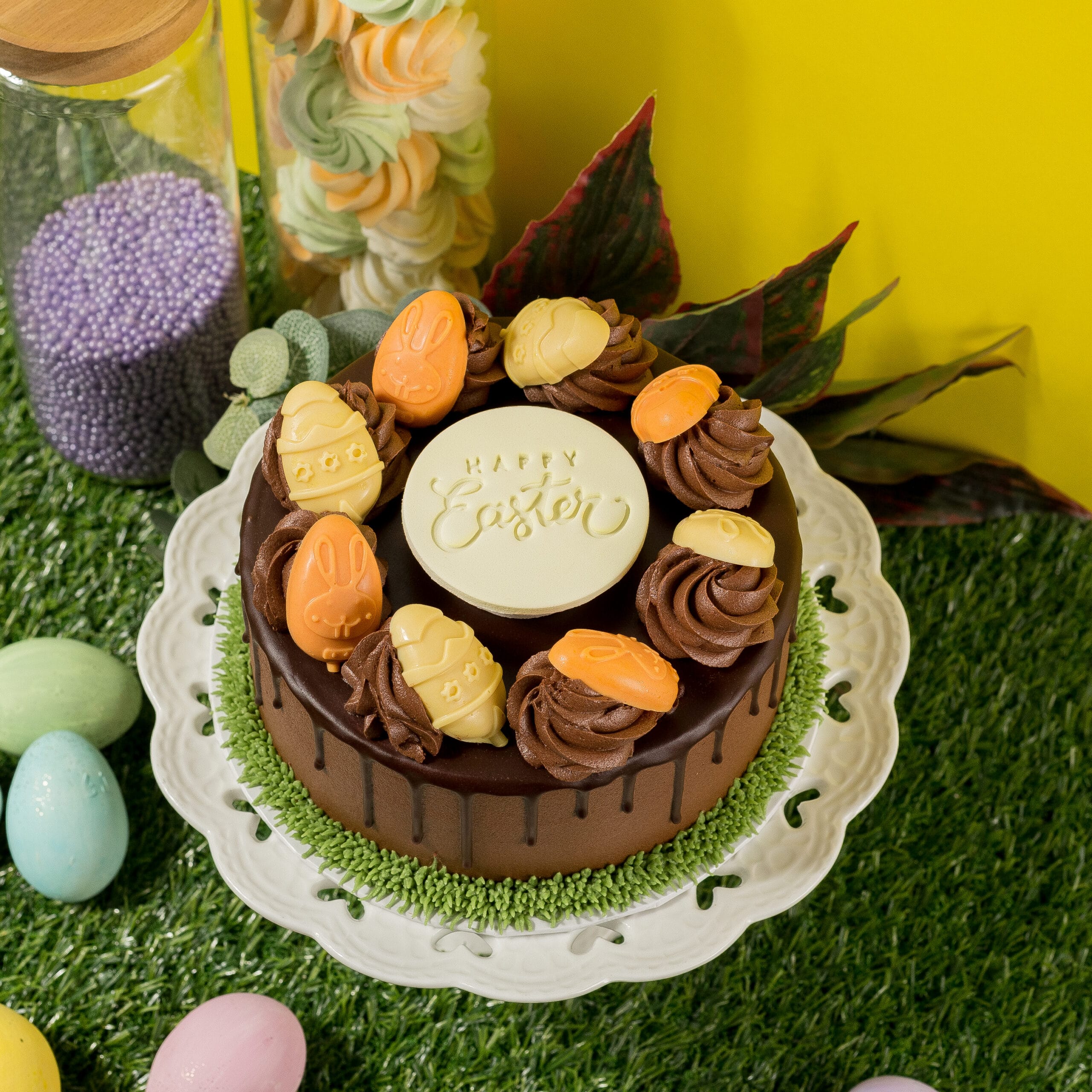 A delicious Chocolate Cake with Easter elements.