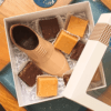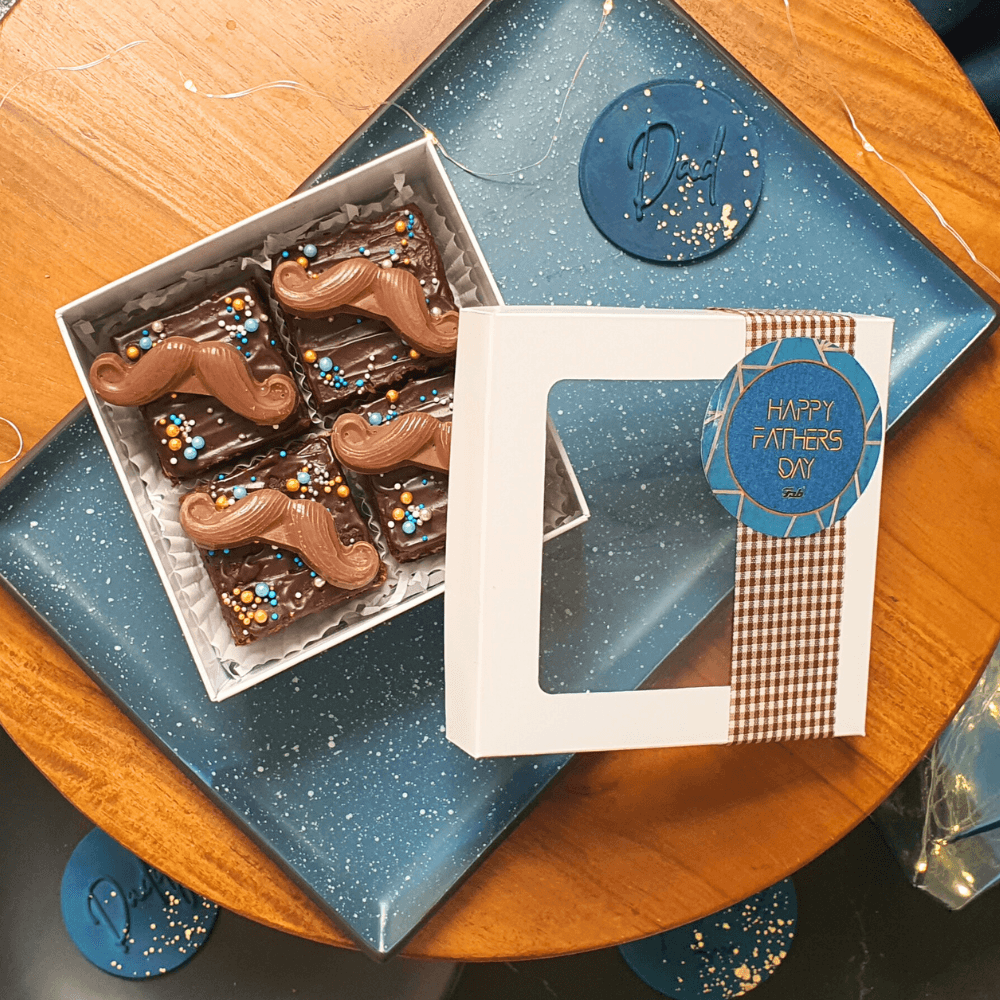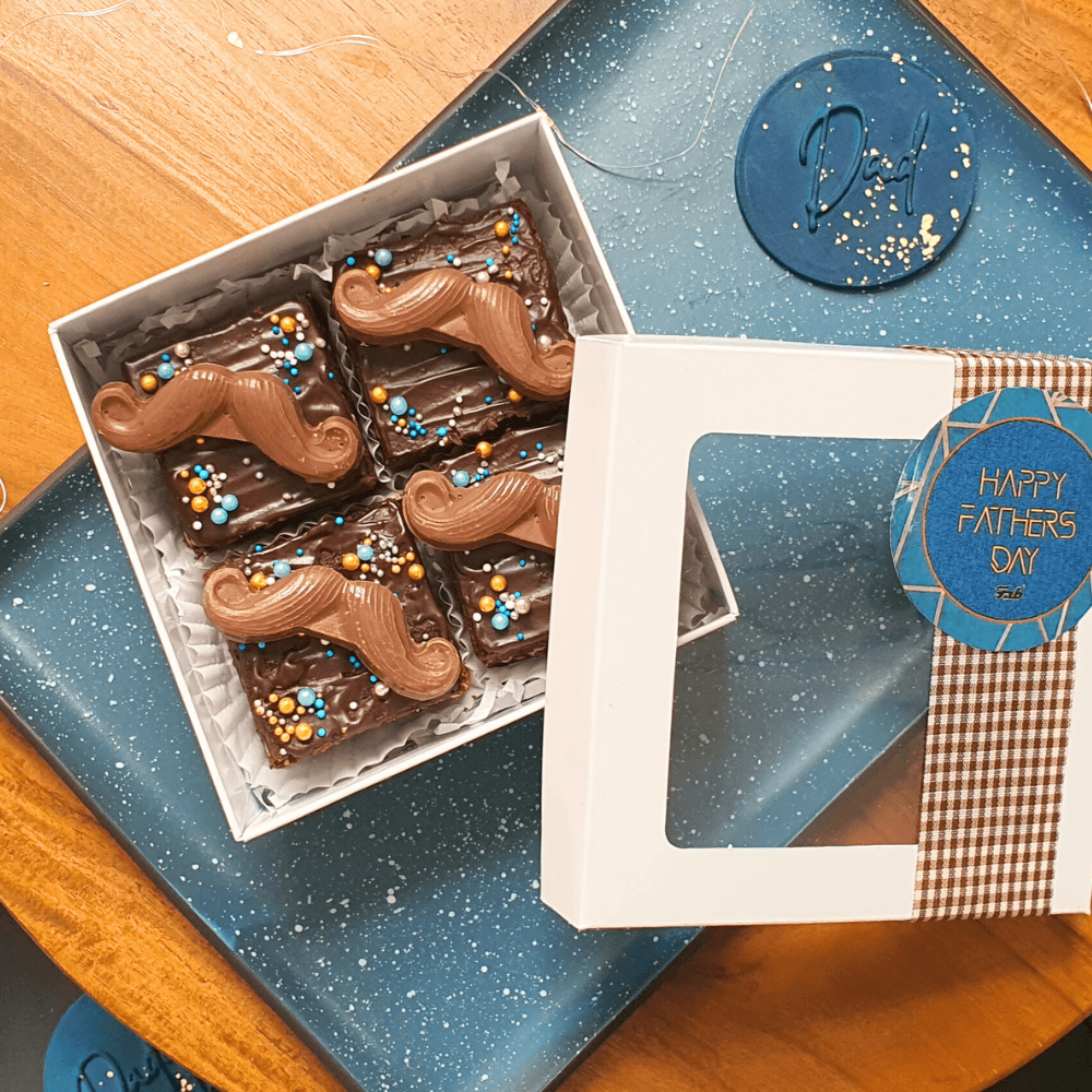 Four very yummy chocolate brownies topped with chocolate moustaches for Dad!