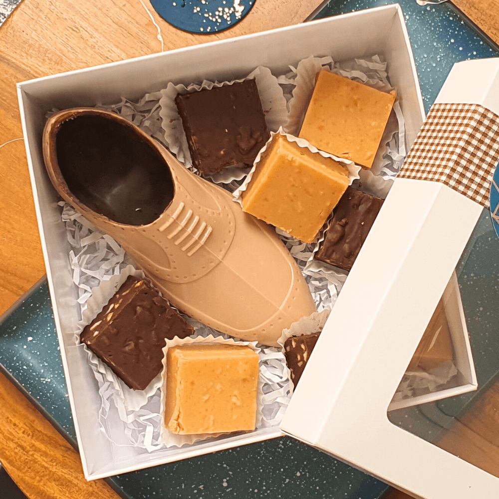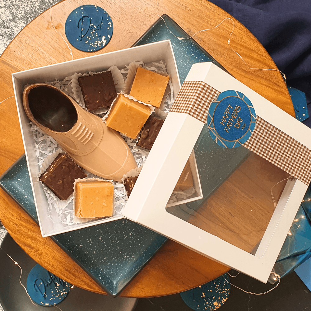 Now here is a treat for the Dad of the year! A gorgeous shoe made of chocolate along with 4 x Peanut Butter slices and 4 x Chocolate Fudge Slices.