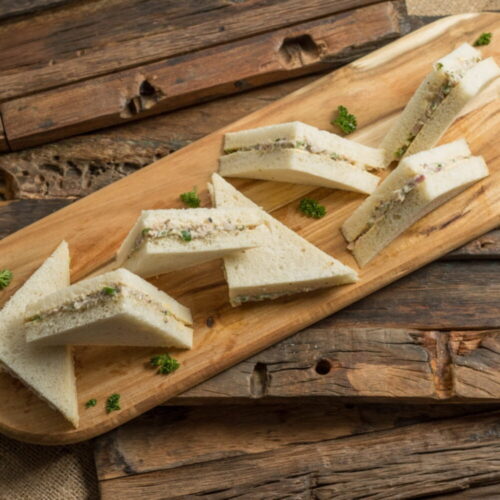 Sandwich with fish, green chilli, cucumber and mayonnaise filling