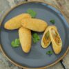 A thin pancake stuffed with half a boiled egg and fish filling and deep fried