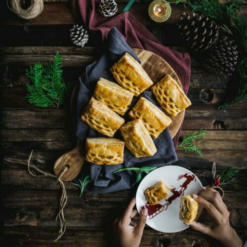 Chicken ham cooked in a festive spice mix with an addition of sweet tangy pineapple chunks enrobed in a puff pastry case.
