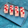 A slice of vanilla sponge sheets layered with chocolate butter icing and roasted nuts topped with a rich chocolate fudge.