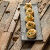 Fish filling, coleslaw and egg in a tart with a mayonnaise rosette