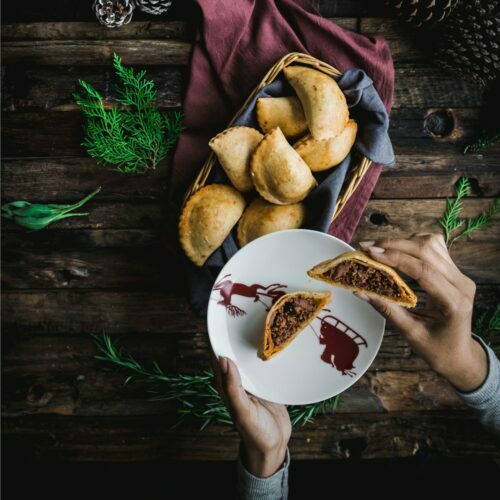 Sausage meat combined with dry tangy cranberries spiced with chilly flakes encased into a buttery shortcrust pastry.
