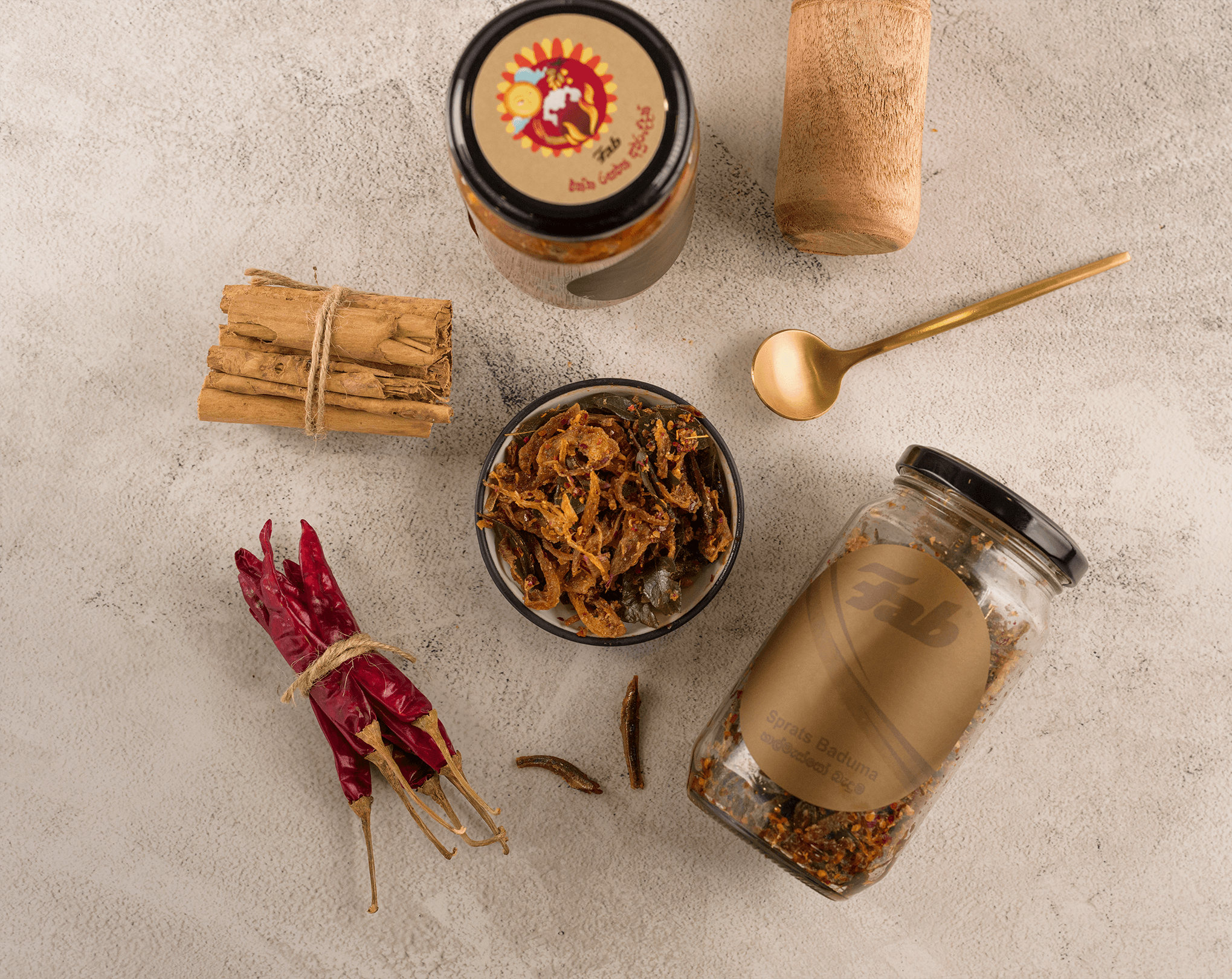 Dried sprats are fried with a mix of onions, red chilies and addition of spices to be made crispy.