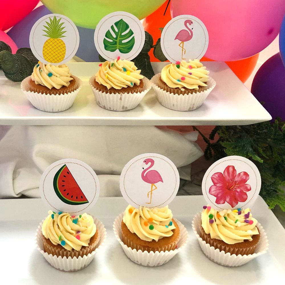 Tropical themed 6-pack vanilla cupcakes