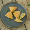 Vegetable filling stuffed into a capsicum, covered in breadcrumbs and deep fried